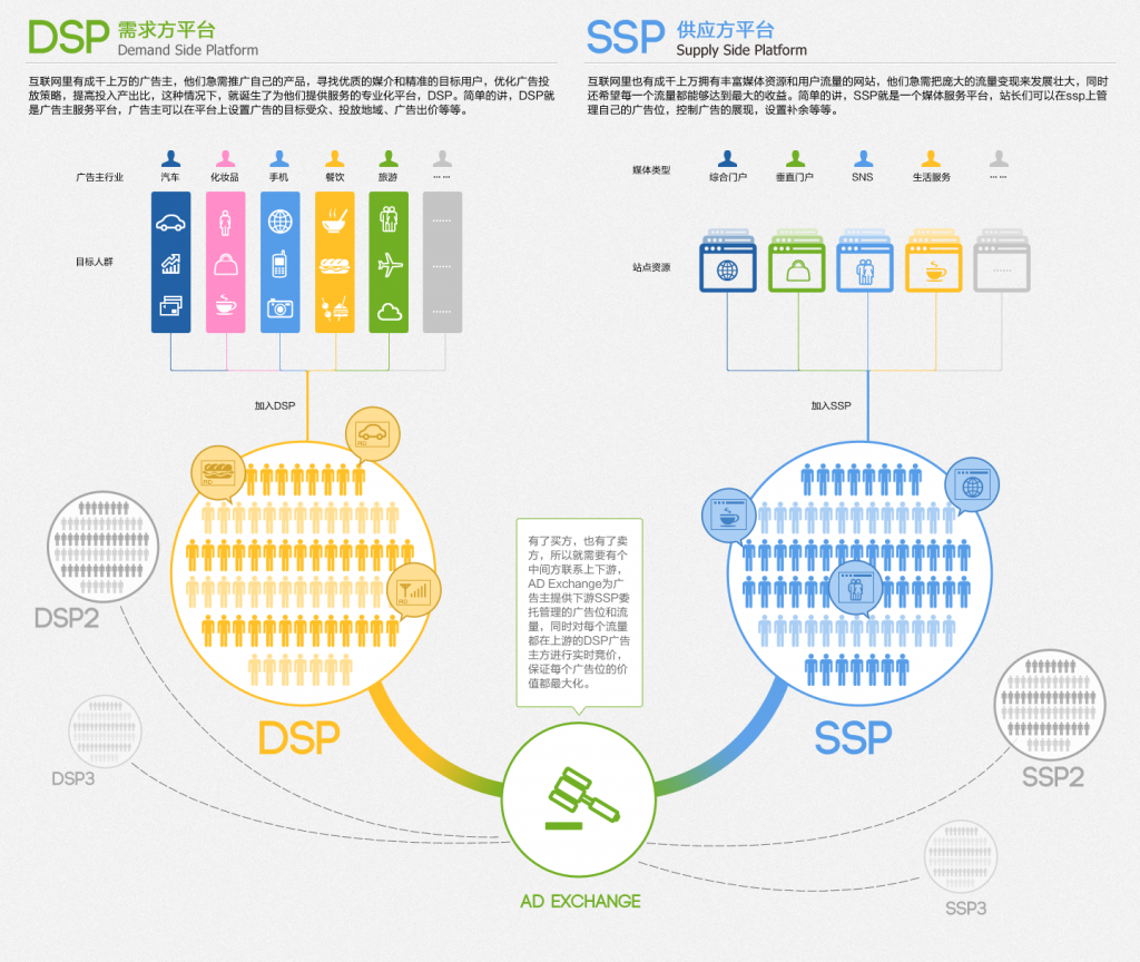 簡(jiǎn)單的說(shuō),RTB建立了一個(gè)廣告的“交易所”即AD EXCHANGE,當有廣告位產(chǎn)生時(shí),各個(gè)廣告主通過(guò)“競拍”的方式來(lái)獲得這個(gè)廣告位。